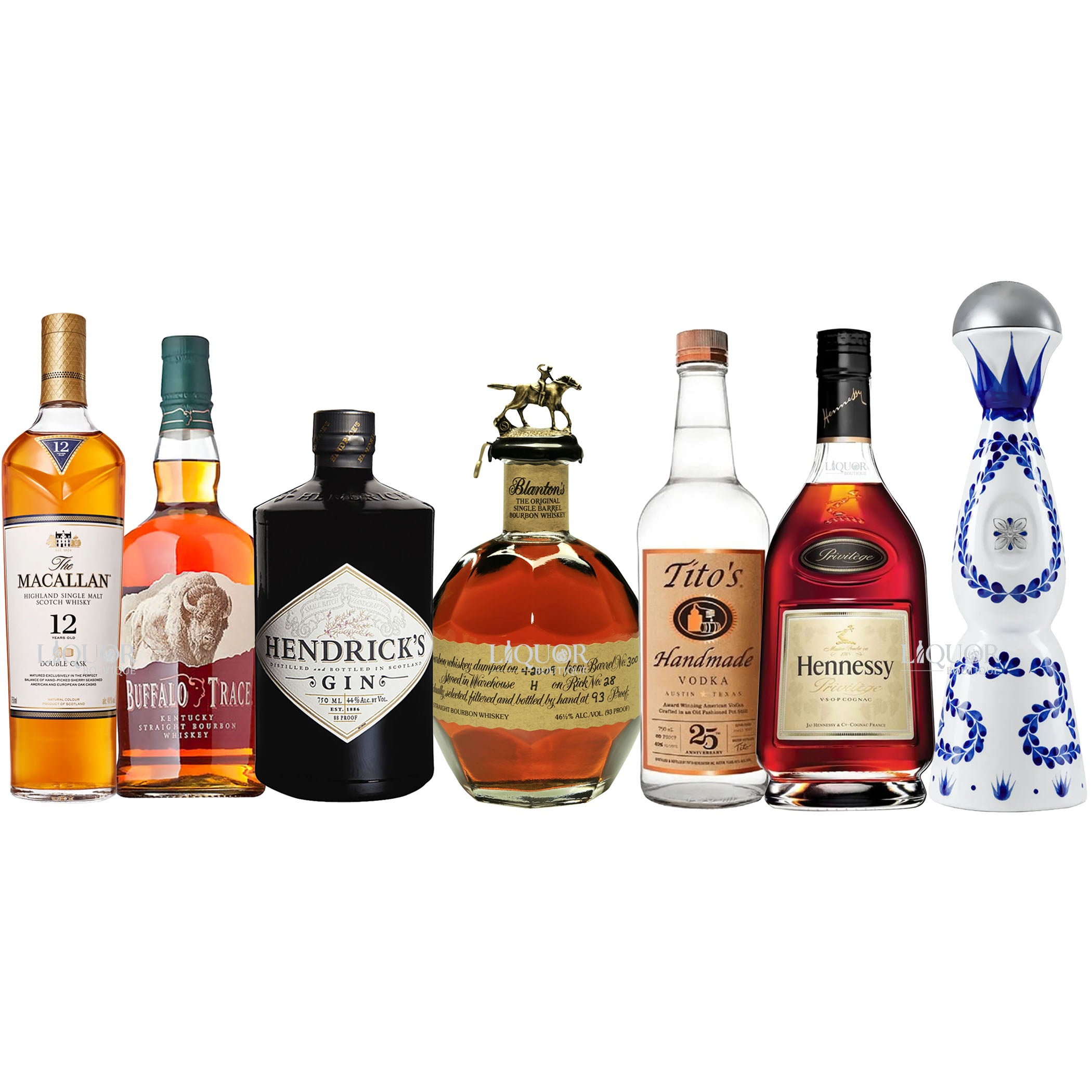 Macallan, Buffalo Trace, Hendrick’s, Blanton’s, Tito’s, Hennessy VSOP & Clase Azul Party Bundle