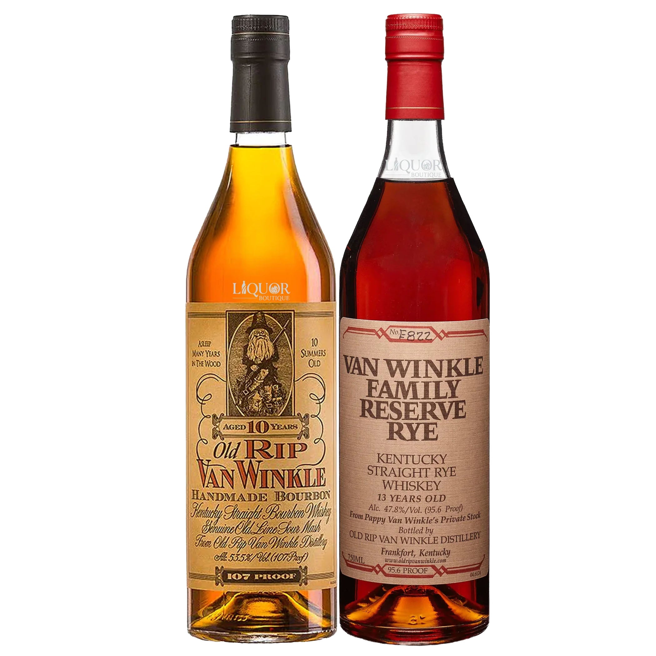 Two 750ml bottles — Old Rip Van Winkle 10 Year and Van Winkle 13 Year Rye.