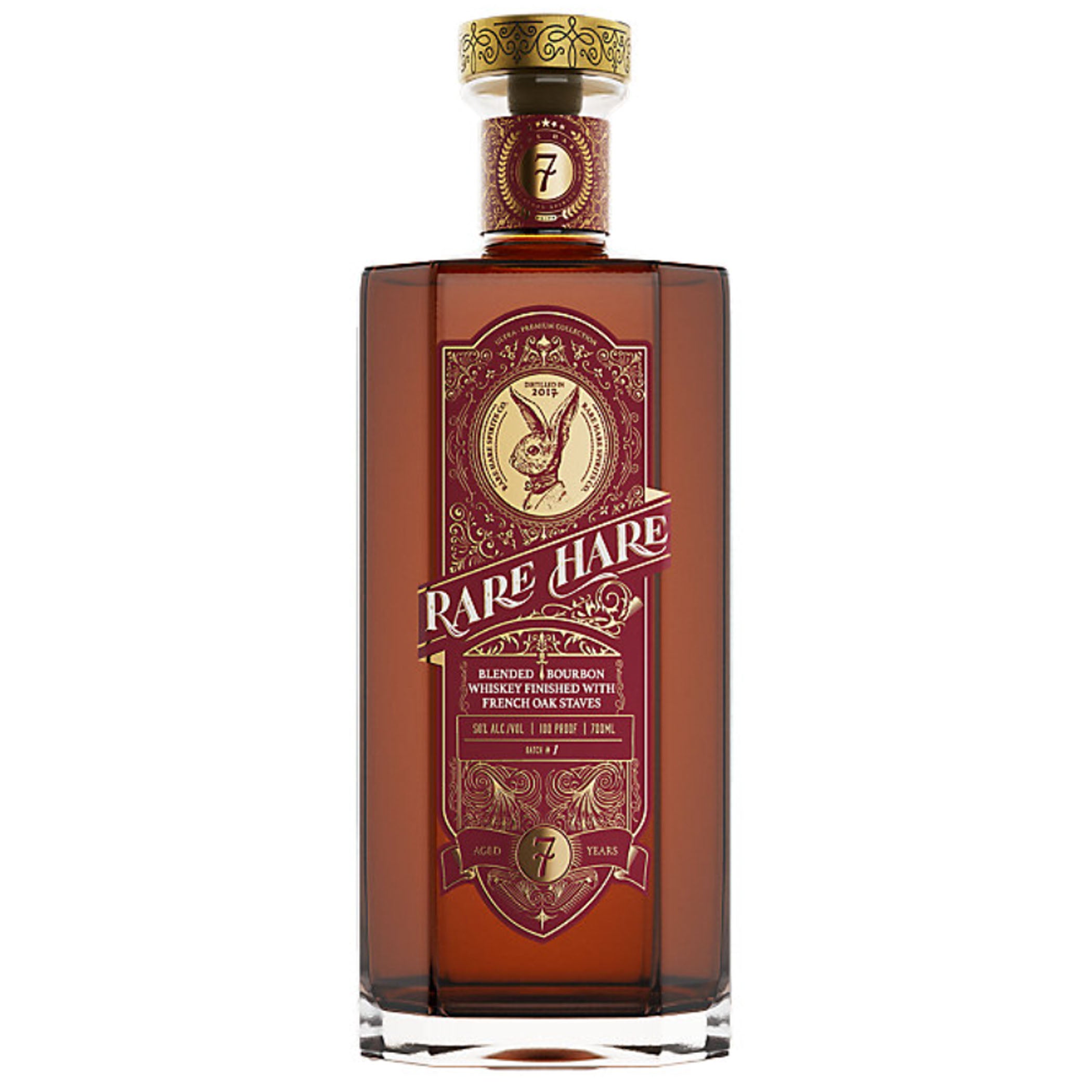 One 750ml bottle of Rare Hare French Oak Staves 7 Year American Whiskey.